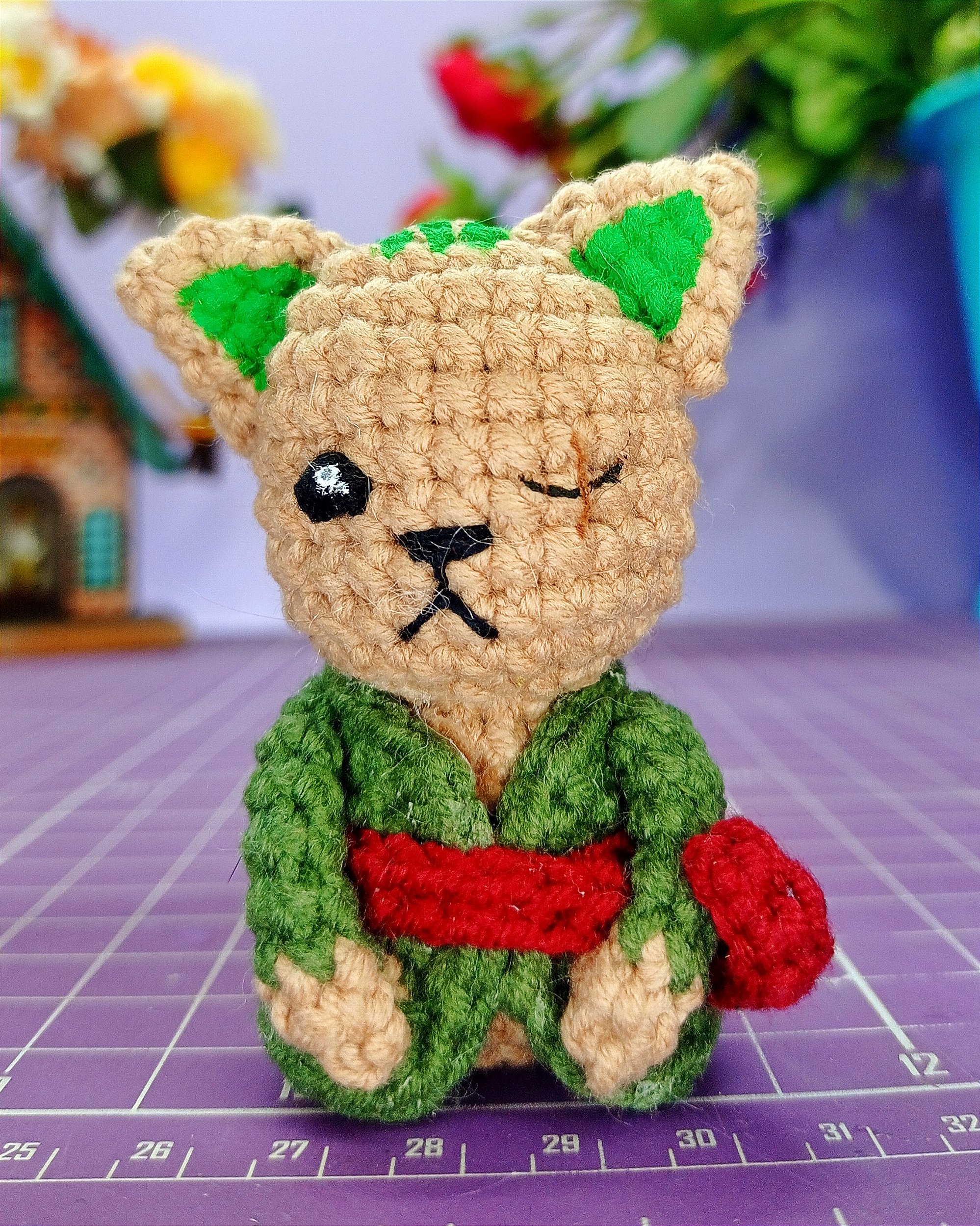 Amigurumi de gatinho inspirado no personagem Zoro de One Piece. Possui aproximadamente 6 cm, tamanho perfeito para decorar, colecionar ou pendurar onde preferir. Quem é fã vai amar o presente!